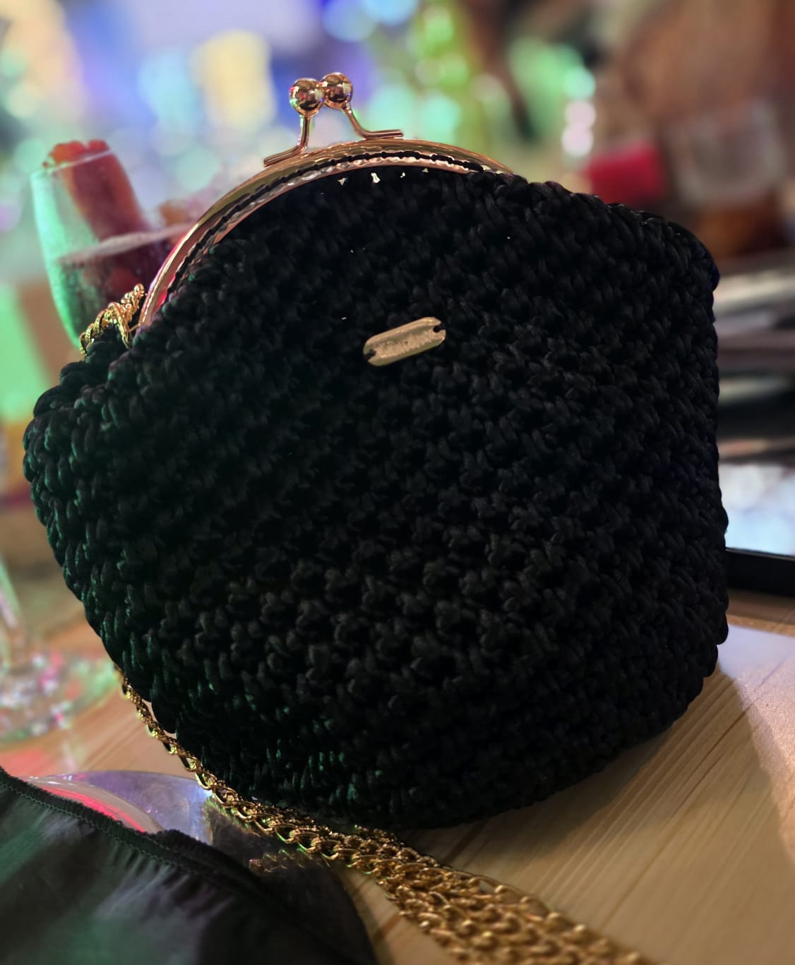El clásico que nunca pasa de moda. ✨ Nuestra cartera tipo "kiss-lock" combina el encanto retro con la elegancia del tejido a mano. Un accesorio diseñado para ser el protagonista de tu noche.