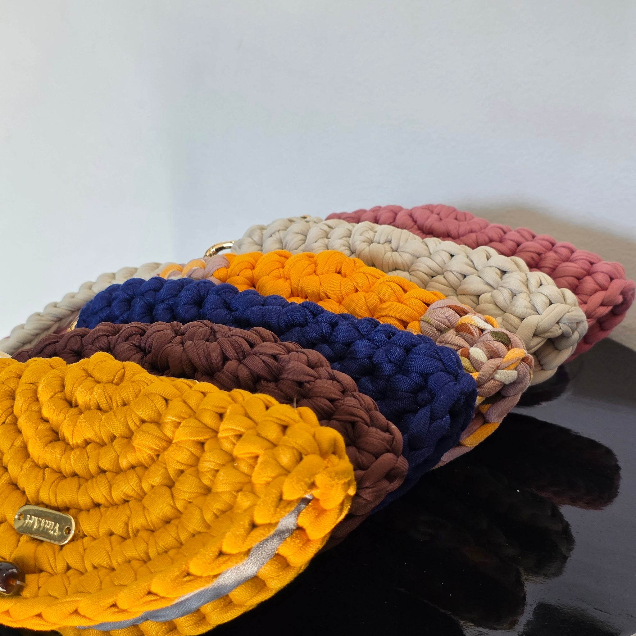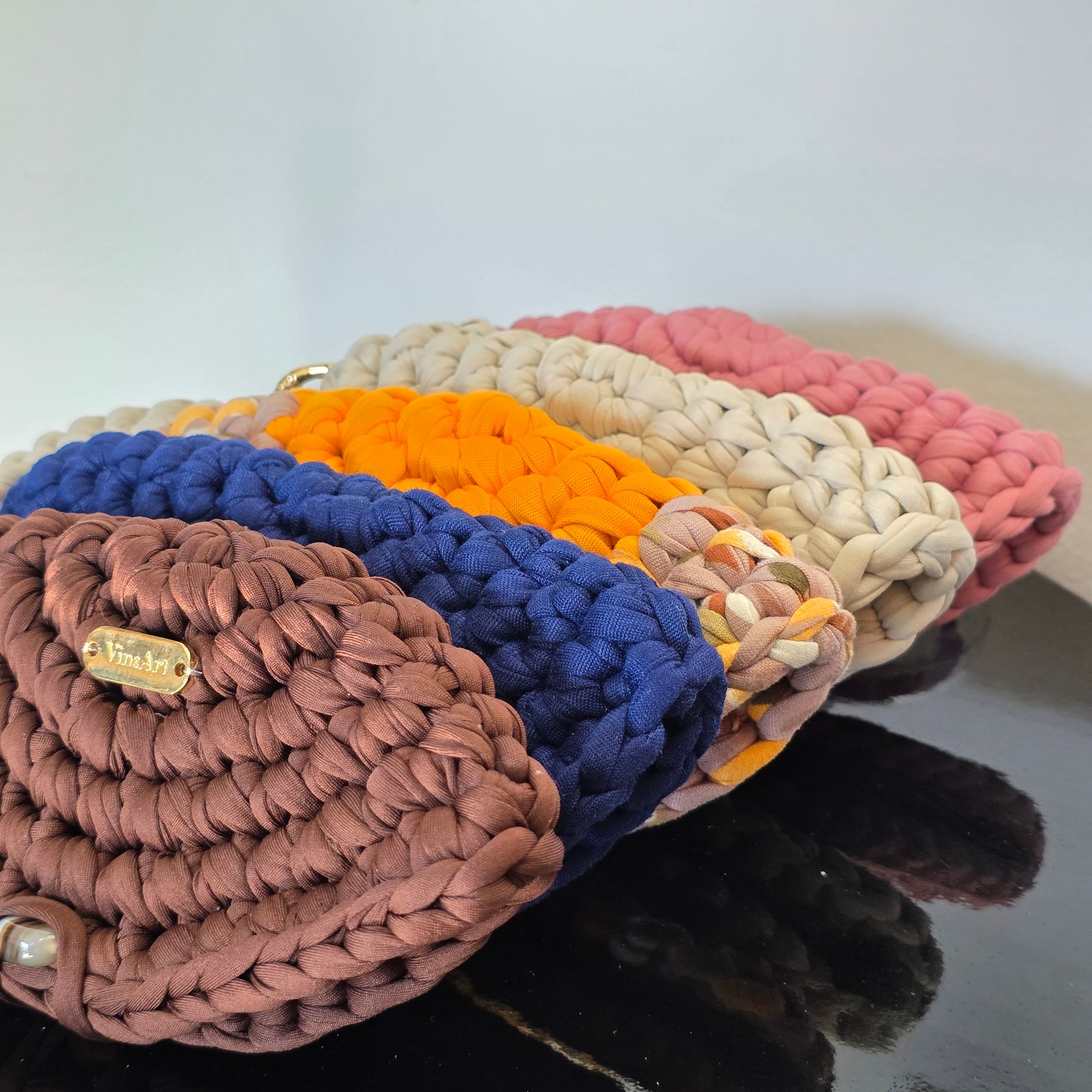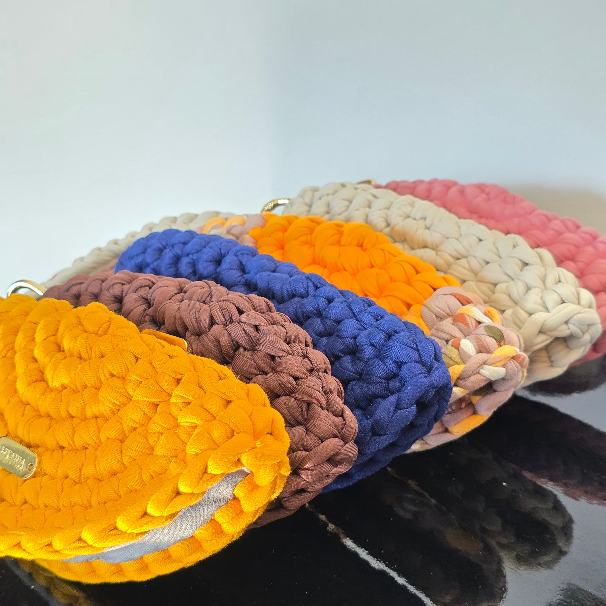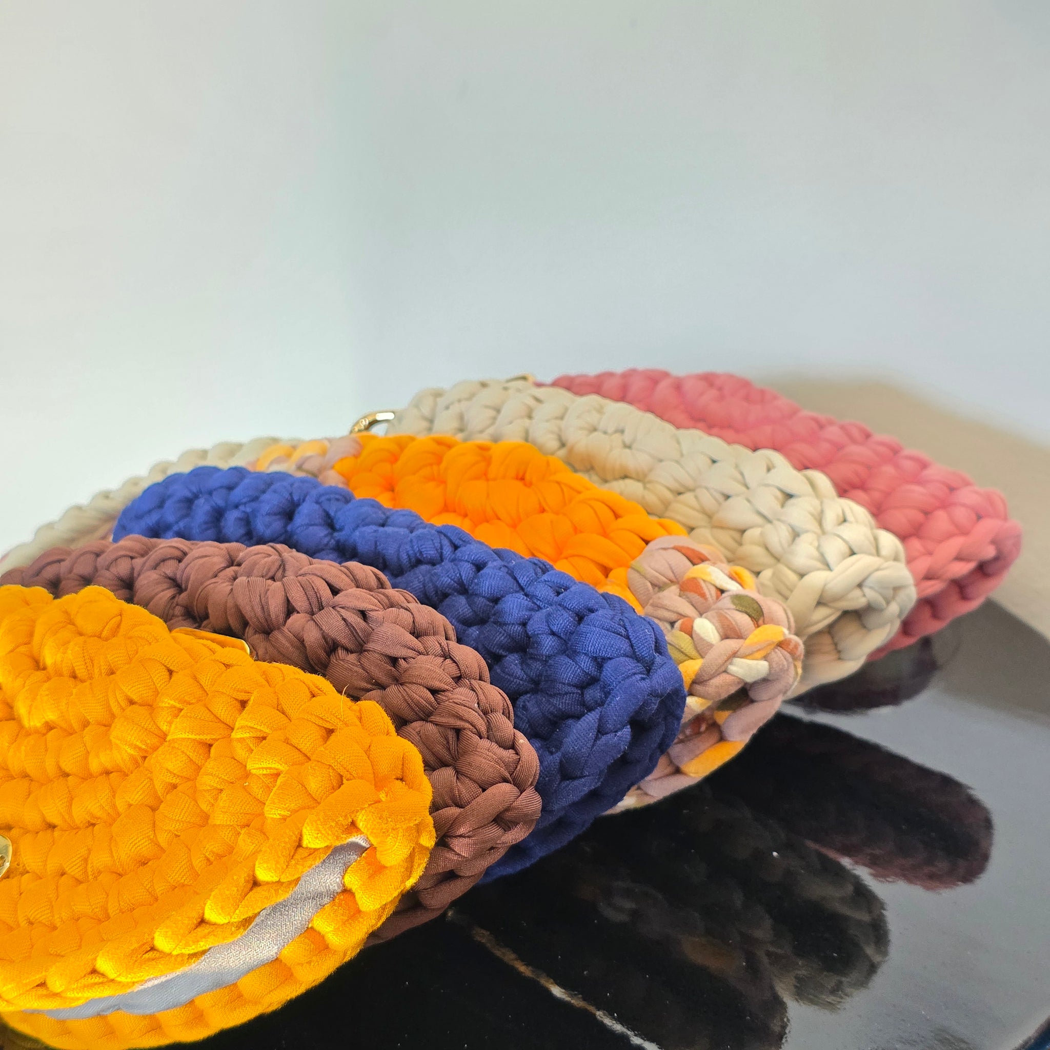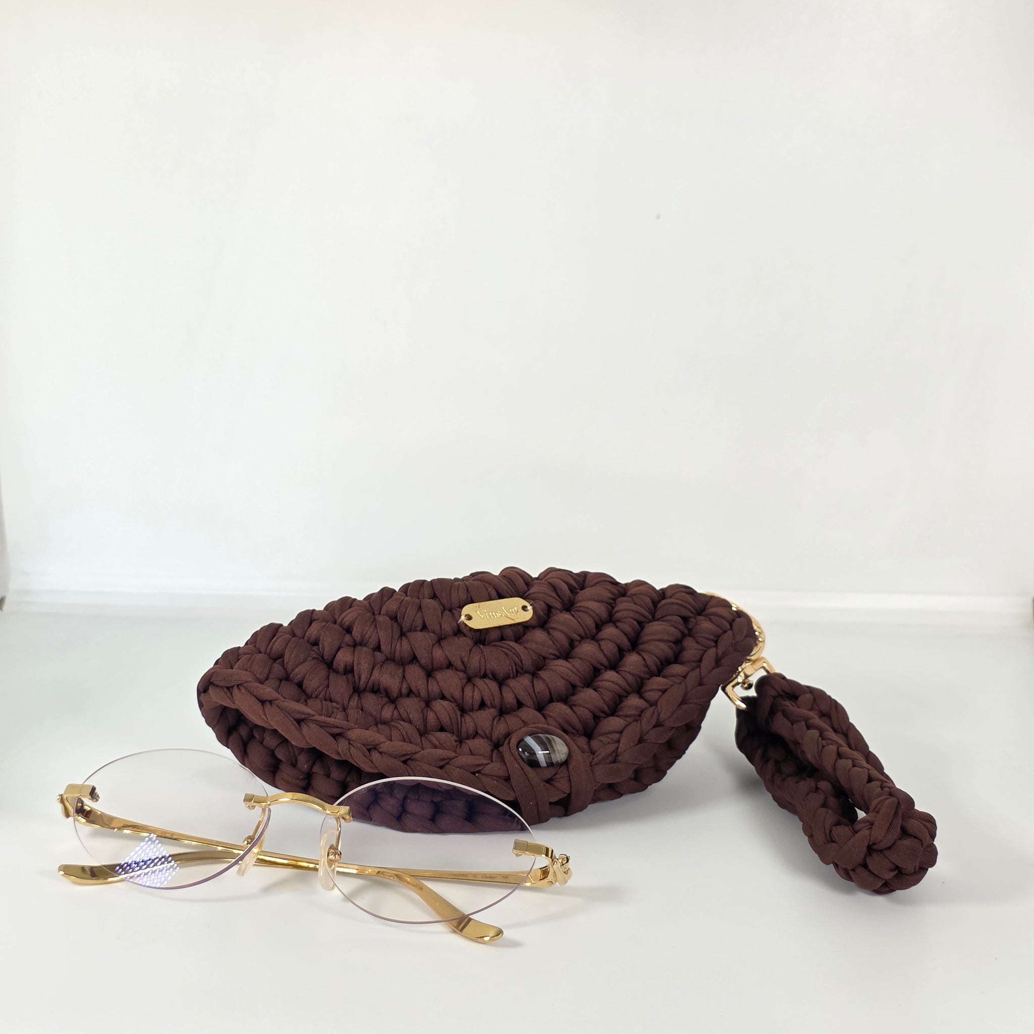 Portagafas elaborado en trapillo pluma con protector para que tus gafas no se rayen, practico para colgar en tu bolso.