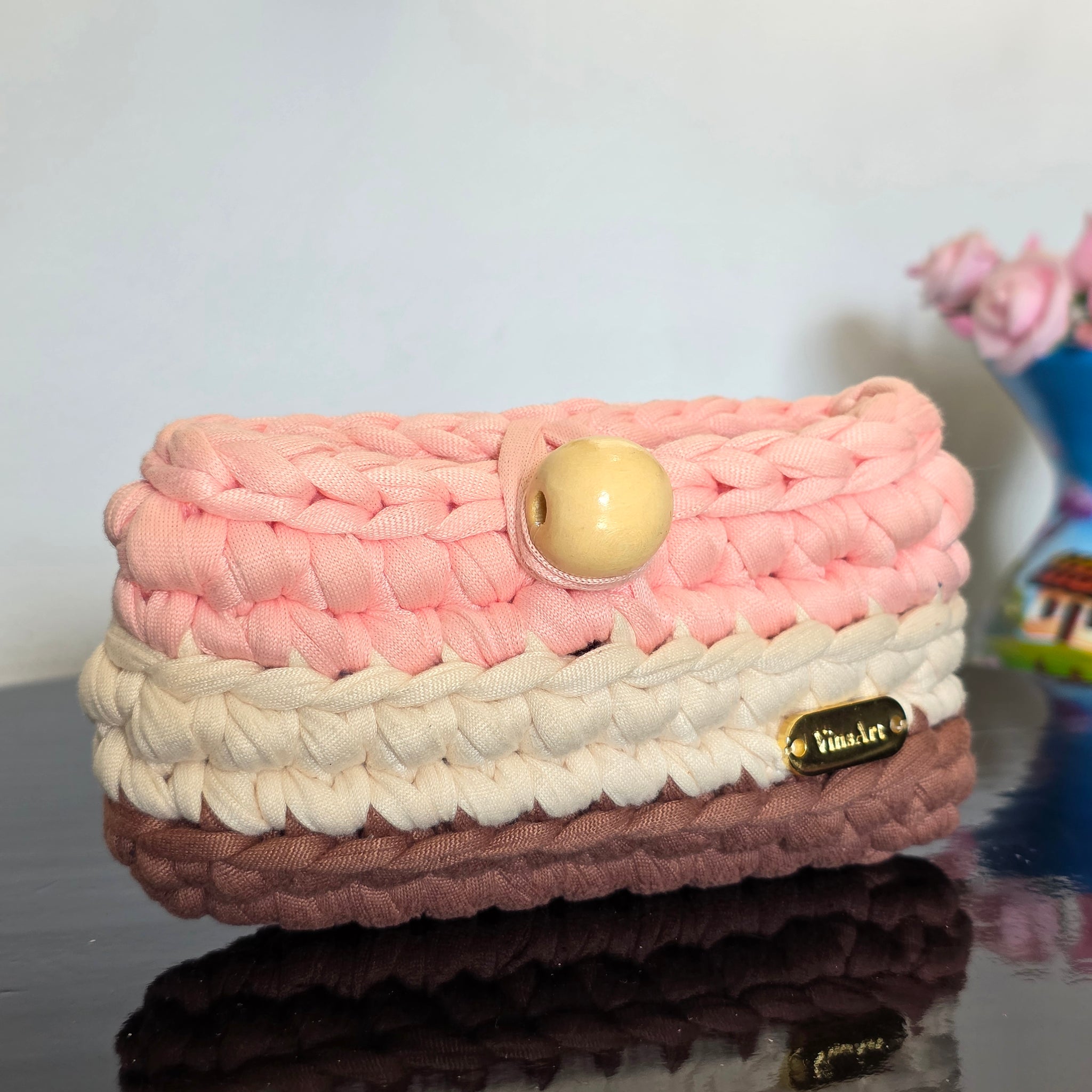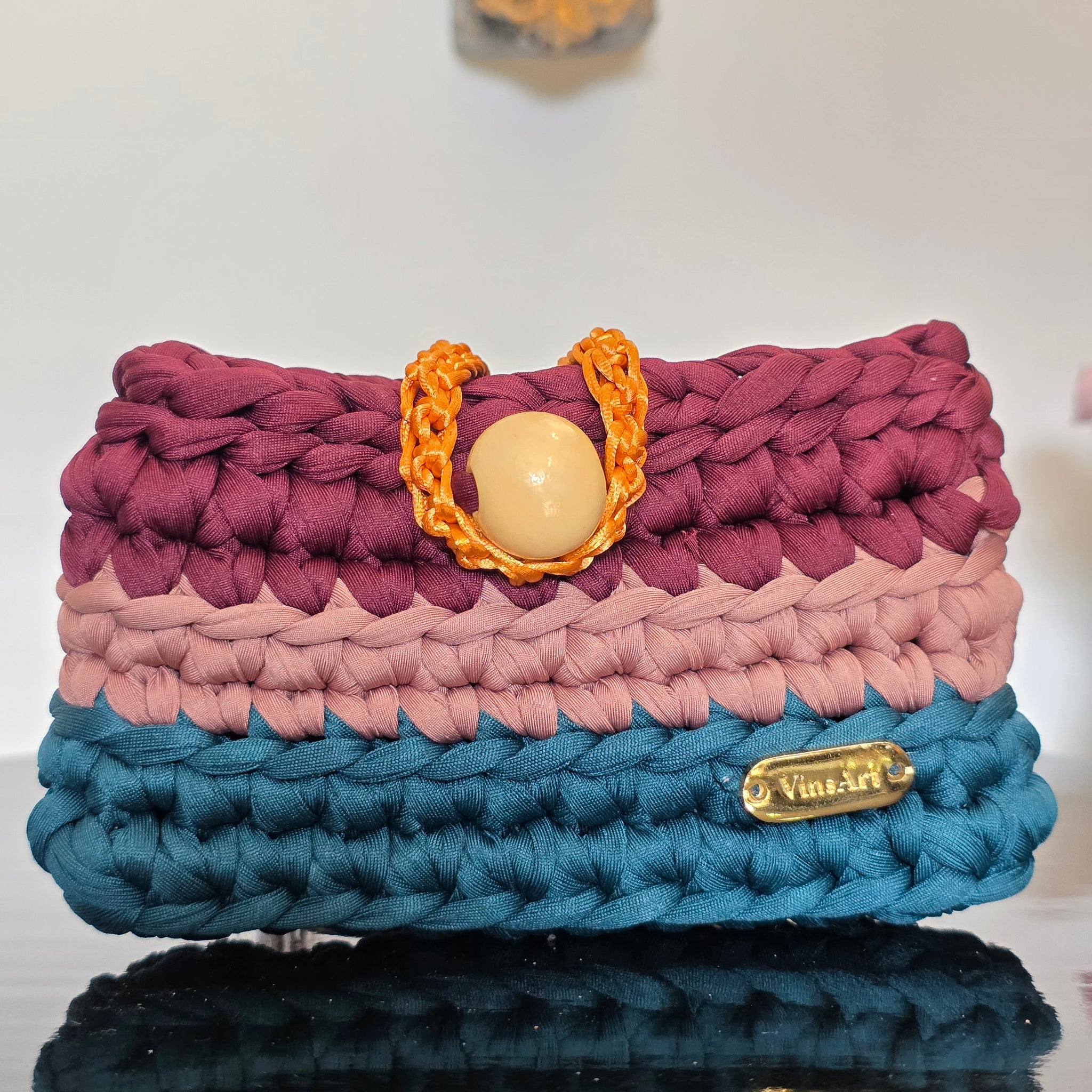 Tejido a crochet con trapillo pluma, ideal para guardar tus documentos mas importantes.